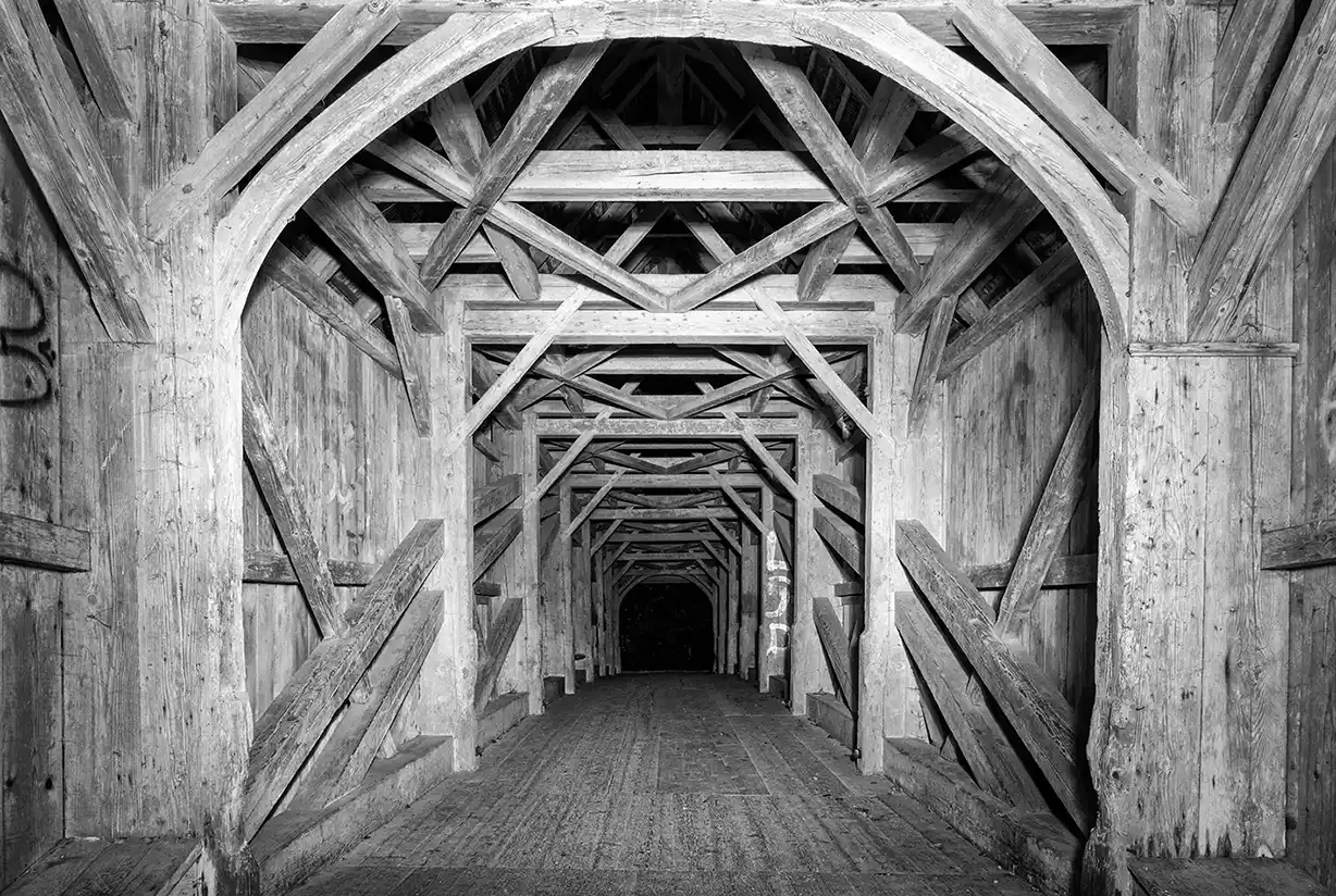 Die überdeckten Brücken – stille Wächter aus Holz und Geschichte – wurden zu Kulissen der Magie. Unter ihrem Dach herrschte eine andere Zeit. Der Wind hielt den Atem an. Der Nebel, der sich langsam aus dem Fluss erhob, kroch durch die Ritzen, legte sich wie ein Schleier über die Planken. Und dann – das Knirschen. Ein Geräusch, das aus der Tiefe kam. Nicht bedrohlich, aber ehrlich. Die Bäume, die im Wind schwankten, ächzten leise, als erzählten sie Geschichten aus Jahrhunderten.