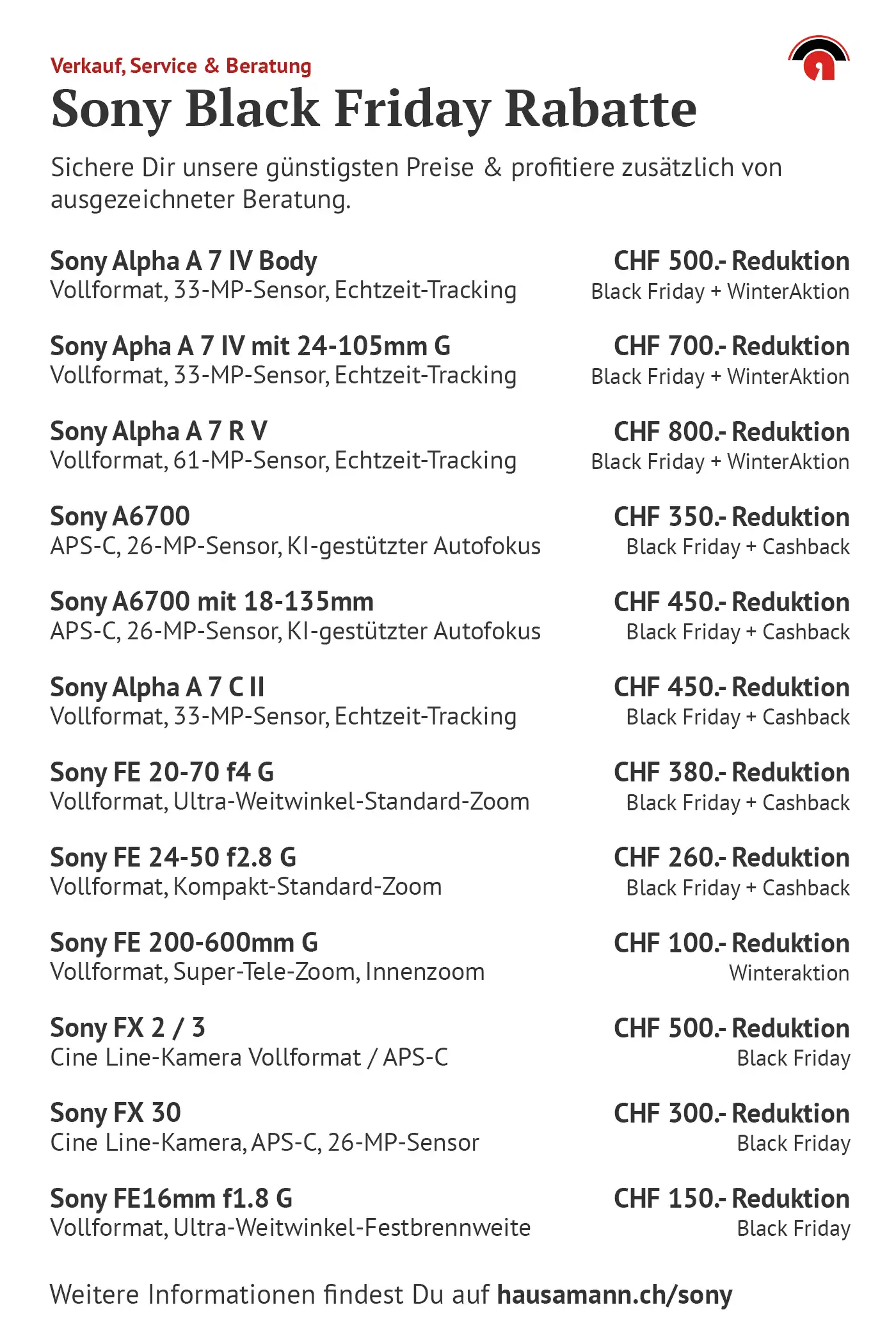 Ob du gerade erst in die Welt der Systemkameras einsteigst oder dein Setup mit hochwertigen Objektiven erweitern möchtest — jetzt ist der perfekte Moment, um zu sparen. Wir haben für dich ausgewählte Sony Systemkameras sowie passende Objektive mit attraktiven Rabatten zusammengestellt - komm vorbei und lass Dich überraschen!